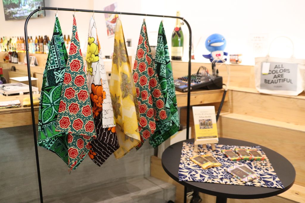 会場では、「CLOUDY」の商品の他、生徒たちがデザインを選んだ9種類のオーバーハンカチや、日南市のタイニーキッチン宮崎とコラボしたチョコレートなど限定商品も販売されています。