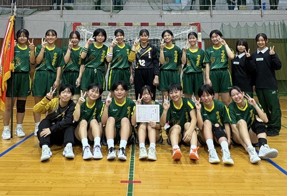 女子ハンドボール部は、南九州高等学校ハンドボール大会宮崎県予選会で優勝し、11月22~23日に鹿児島県で行われた南九州大会に出場しました。