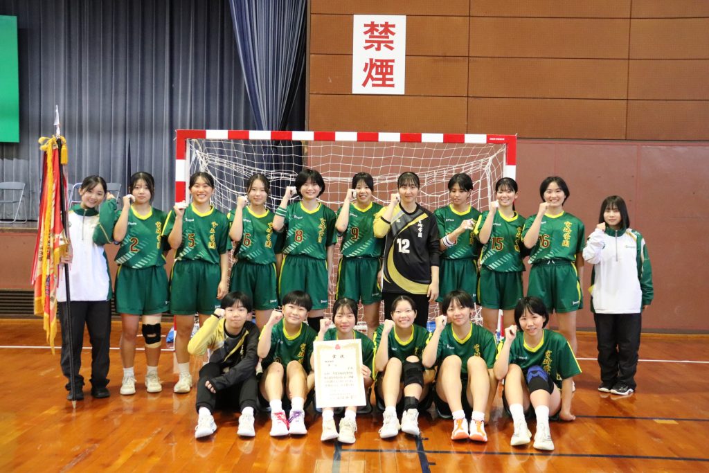 本校女子ハンドボール部は、第60回県高校新人大会に出場し、見事優勝を果たしました。決勝戦では小林秀峰高校と対戦し、35-16(18-8/17-8)で勝利しました。選手一人ひとりが日頃の練習の成果を発揮し、最後まで集中力を切らすことなく戦い抜きました。そして、2月に行われる九州大会の切符も獲得することができました。今後もさらなる高みを目指し、チーム一丸となって努力を続けてまいります。引き続き、温かいご声援をよろしくお願いいたします。