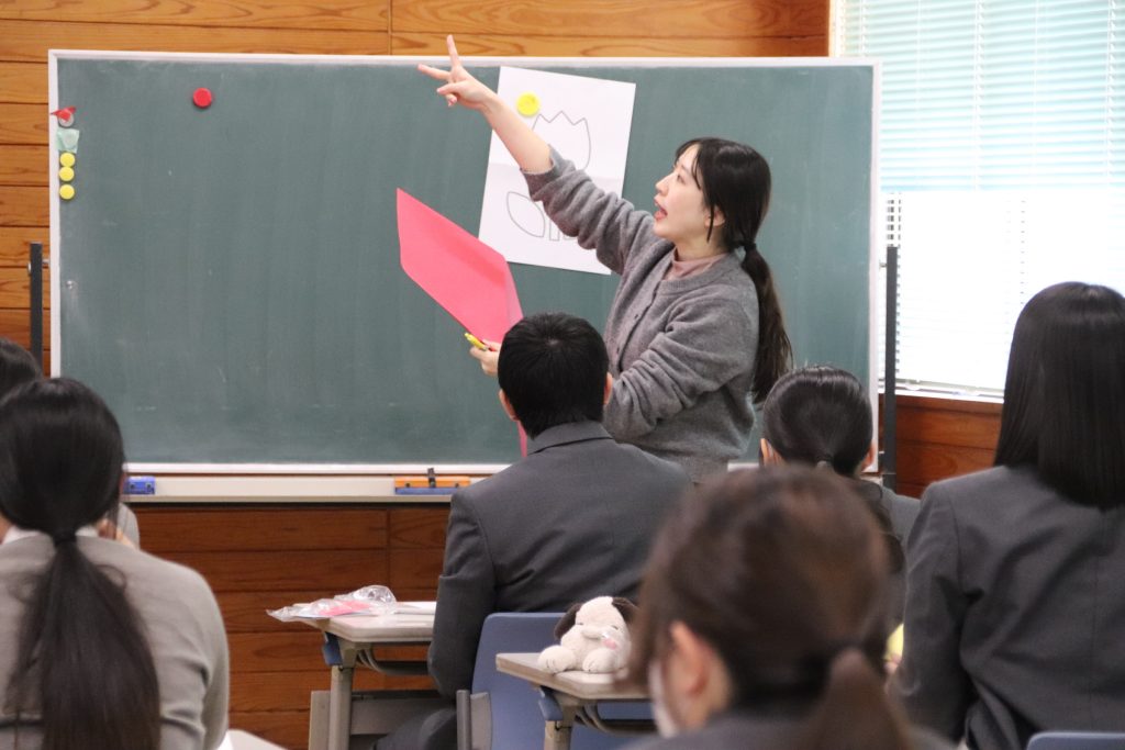 完成した作品には「子どもたちを笑顔にしたい」という思いが込められ、教室はあたたかな雰囲気に包まれました。専門的な学びに触れたことで、進学後の学習や将来の保育者像をより具体的に描く、意欲を高める貴重な機会となりました。
