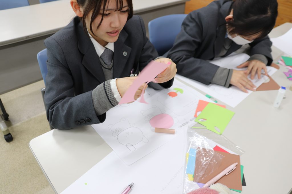 生徒たちは子どもの目線に立った色使いや表情づくり、季節を感じる構成を考えながらアイデアを出し制作に取り組み、保育室を楽しく彩る工夫や思わず関わりたくなる仕掛けづくりを学びました。