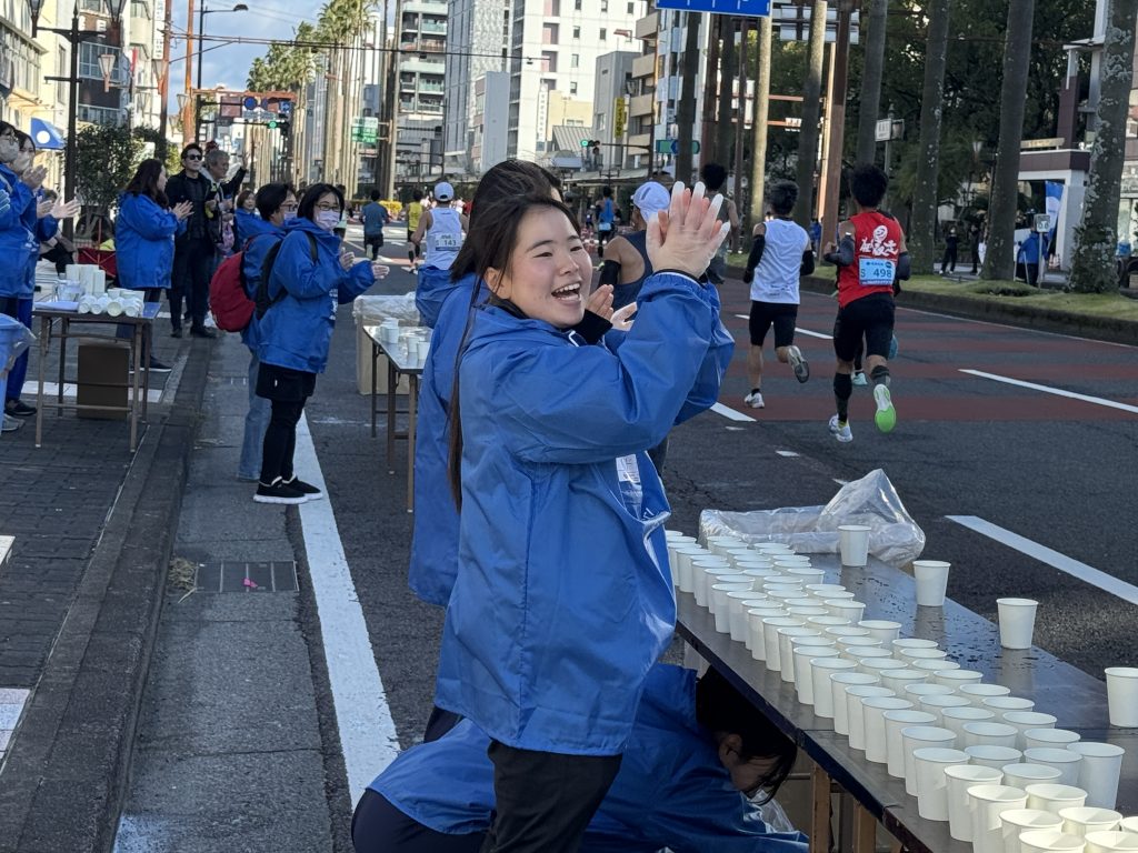 今年で第39回を迎えた青島太平洋マラソン本学園から生徒・教職員あわせて約300名がボランティアとして参加しました。当日は給水や沿道での応援、合唱などそれぞれの持ち場でランナーが安心して走れる大会運営を支えました。