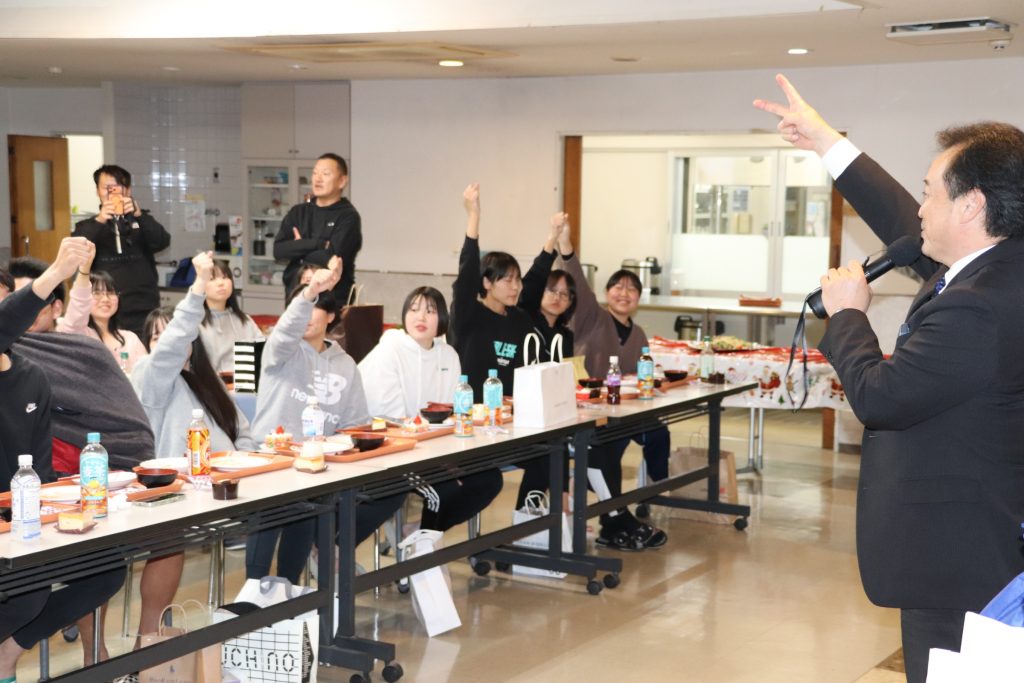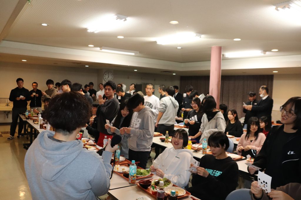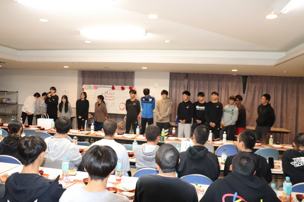 高校トピックス高校1~3年生の寮生と校長先生をはじめ多くの教員も参加し、毎年恒例みどり寮のクリスマス会が開催されました。会場には、クリスマス特別メニューやケーキが並び、和やかな雰囲気でスタート!恒例のビンゴ大会、校長先生企画のじゃんけん大会では学年を超えて大盛り上がり。