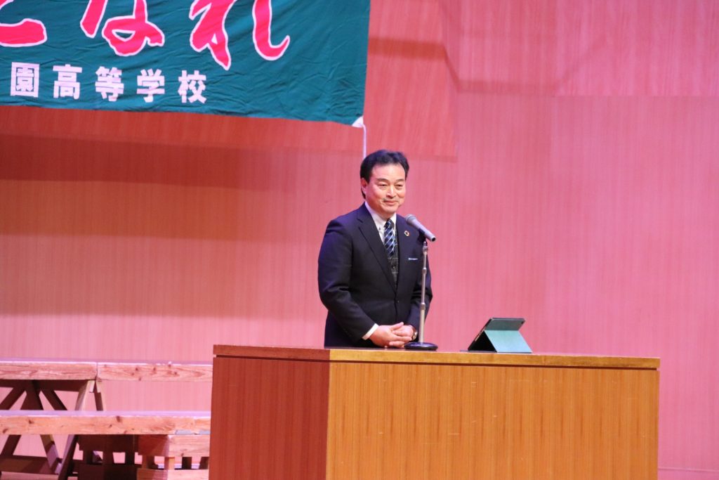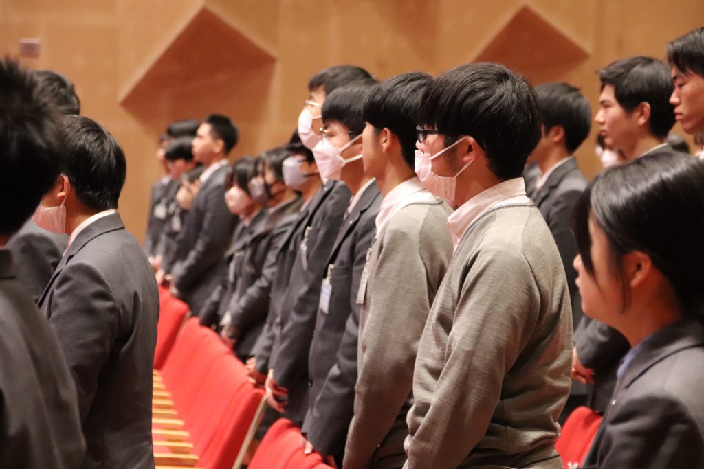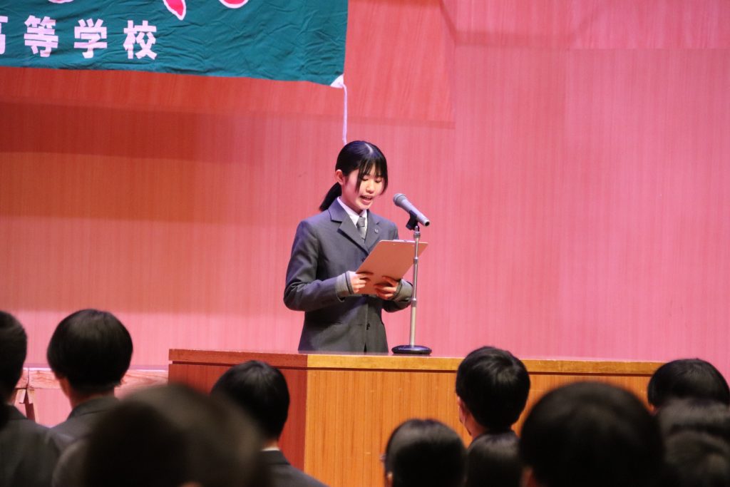 二年生代表からは先輩を思う応援の言葉が述べられ、三年代表は共通テストに向けた力強い決意と今まで支えてくれた家族や先生方への感謝の気持ちを語りました。学校全体で三年生を応援する、温かい壮行会となりました。