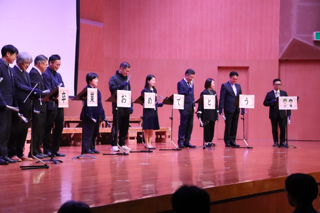 2月27日(金)、卒業生を送る会・表彰伝達式が行われました。卒業式を送る会では在校生が卒業生に向けた動画を制作したり、教職員から演奏の贈り物がありました。