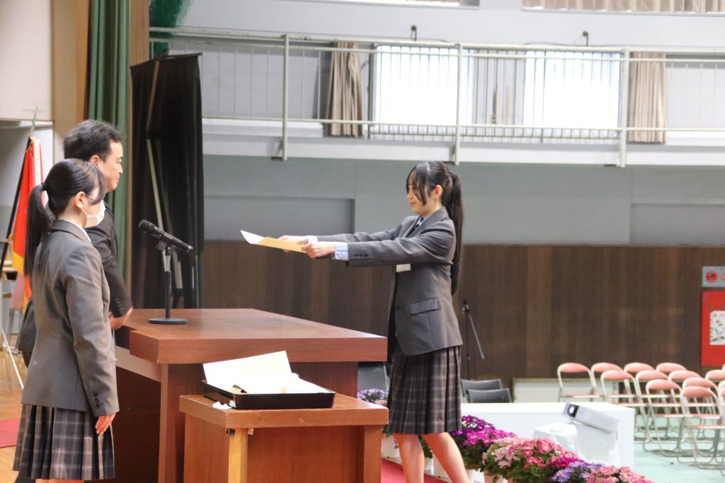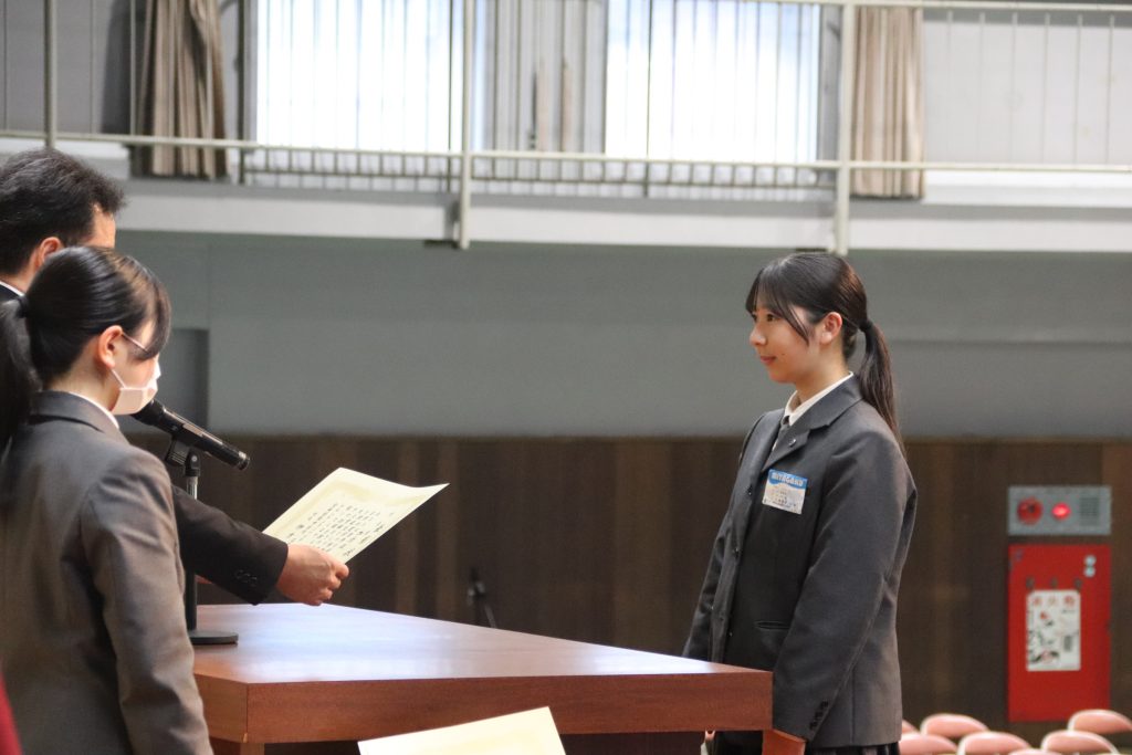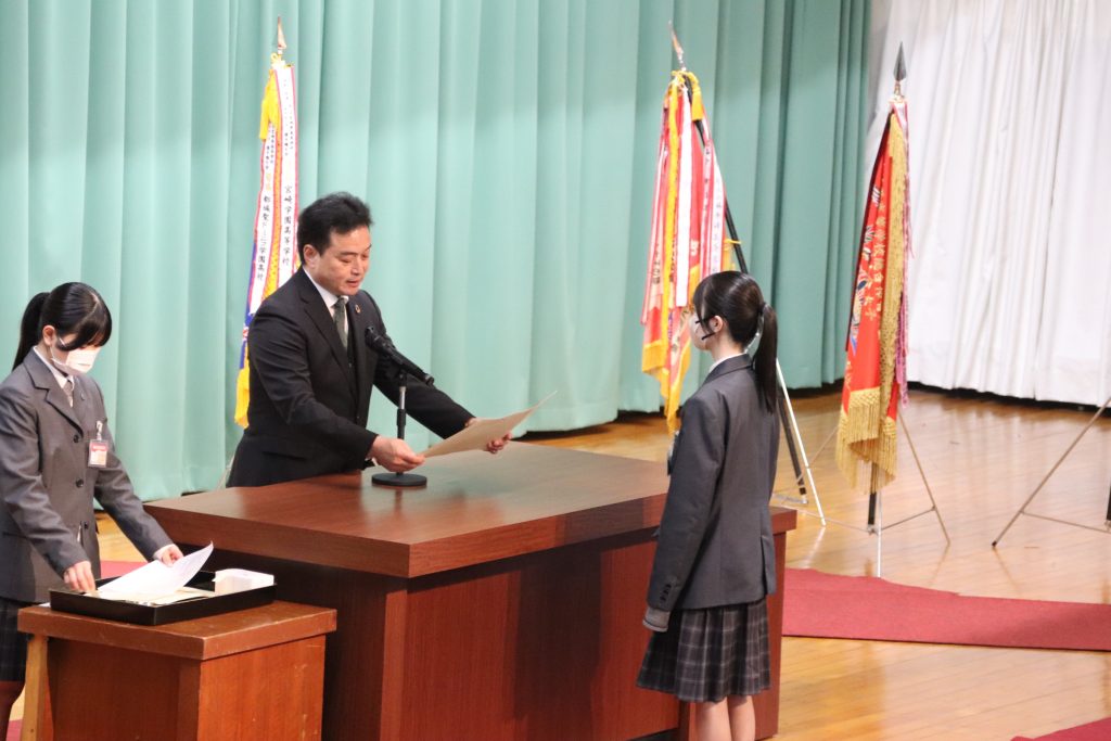 表彰伝達式では、理事長賞や生徒会功労賞、宮崎県高文連会長賞などそれぞれ活躍した生徒が表彰されました。