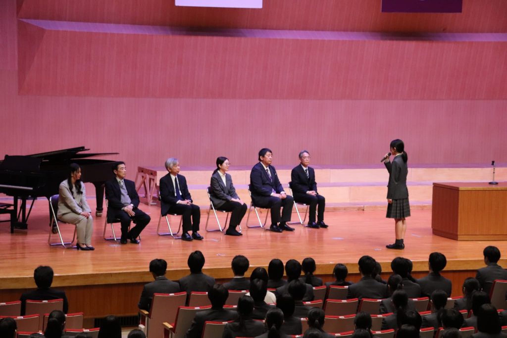3月27日(金)、離任式が行われました。今年度は9名の先生方が宮崎学園を離れることになりました。校長の挨拶の後、離任される先生方からのメッセージがあり、生徒会長からのお礼の言葉と花束の贈呈が行われました。