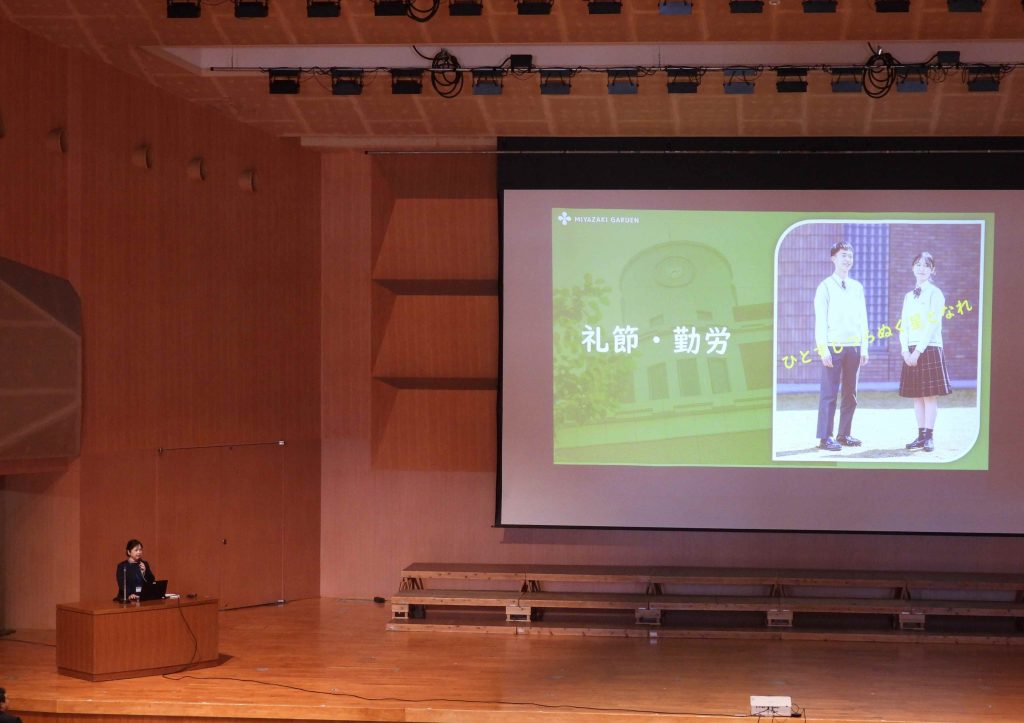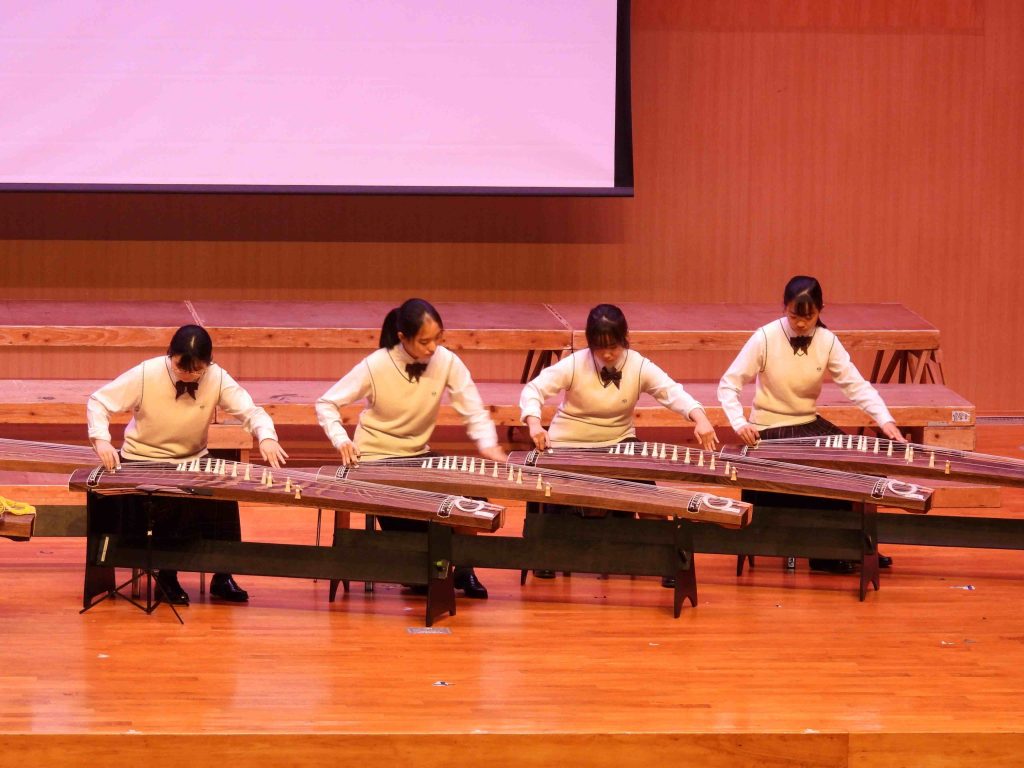 当日は、筝曲部による優雅なオープニングで幕を開け、その後、本校の教育内容や特色についての学校説明を実施しました。