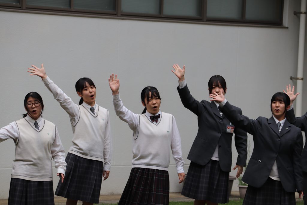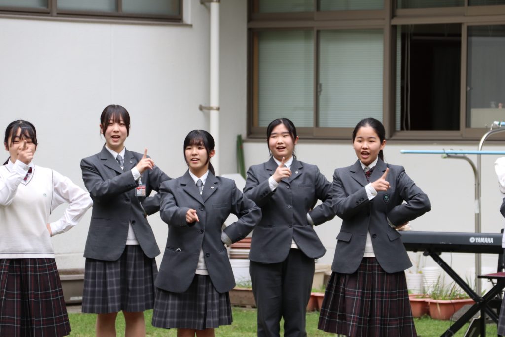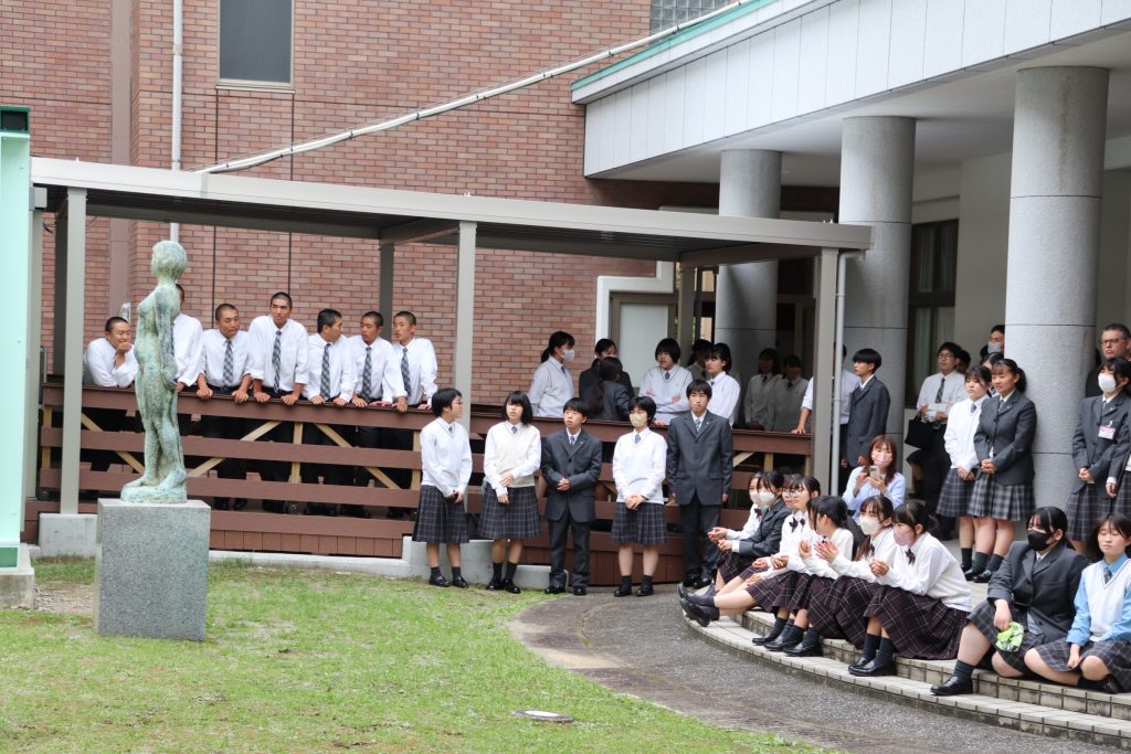 昼休み、合唱部が中庭でミニコンサートを開催しました。聴きなじみのある曲から合唱部らしい本格的な曲まで、幅広い楽曲を披露しました。校舎や中庭では多くの生徒が足を止めて鑑賞し、美しい歌声が広がる中、会場は温かく心地よい雰囲気に包まれていました。