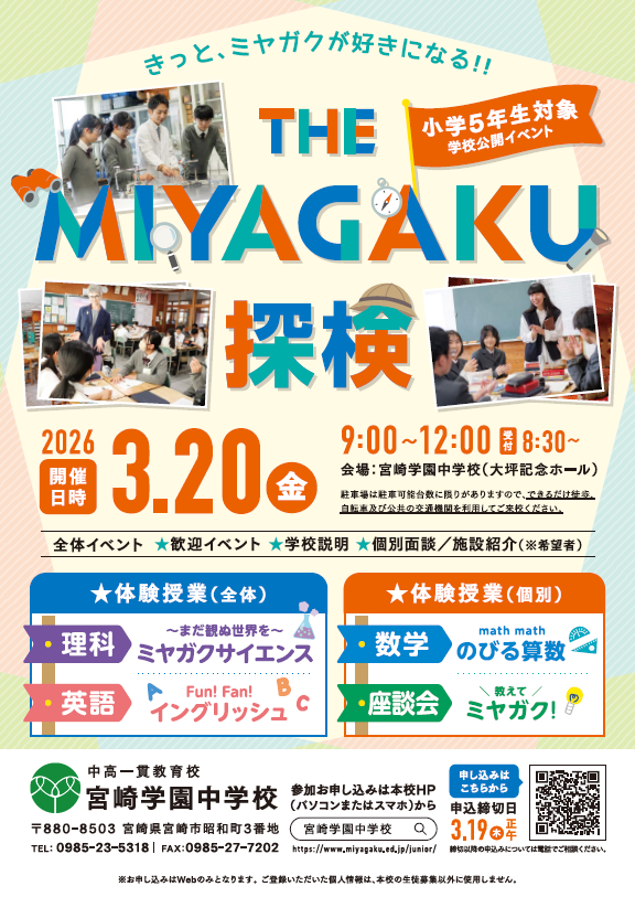 3月20日(金)に小学5年生対象「THE MIYAGAKU探検」を開催いたします。