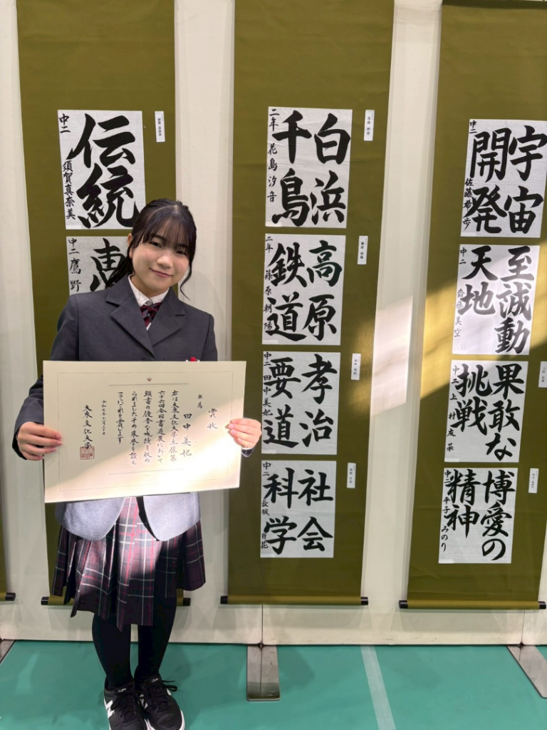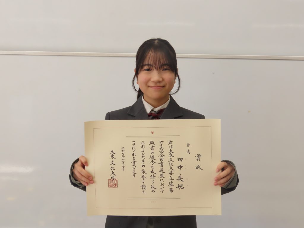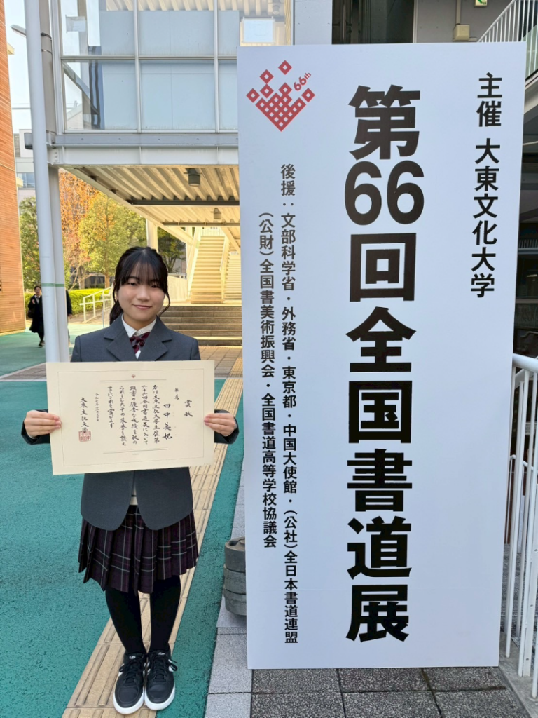 本校2年 田中美妃さんが、大東文化大学主催第66回全国書道展において、推薦賞を受賞しました。